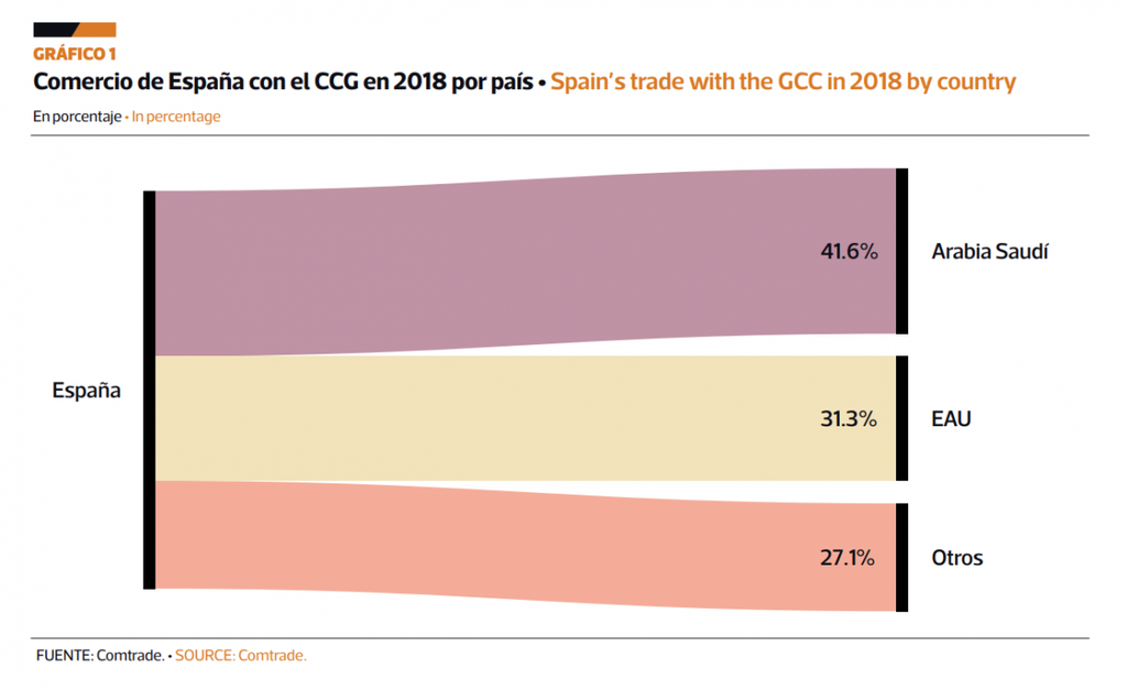 Los lazos entre España y los países del Consejo de Cooperación del Golfo (CCG) han ido creciendo a lo largo de los últimos años. Las exportaciones del país europeo hacia los miembros del CCG han crecido desde los 5.500 millones de dólares estadounidenses a principios de década hasta los $8.300 millones al cerrar 2018, lo que supone un incremento del 50,9%. Es debido a este crecimiento de las exportaciones desde España hacia el CCG que éstas, en comparación con el resto de las exportaciones españolas, se han mantenido relativamente estables, oscilando entre 2-3%. Esto es a pesar del importante incremento de las exportaciones totales del país europeo, que pasaron de 191.912 millones de euros en 2010, a €293.459 millones en 2018, aumentando un 53%.
