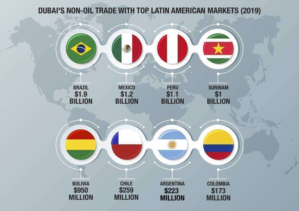 La Cámara de Dubai es una de las entidades más activas en la promoción del emirato en el ámbito mundial. Hace siete años, la Cámara se embarcó en una ambiciosa estrategia de expansión internacional al abrir su primera oficina de representación. Hoy en día, cuenta con cuatro oficinas en África, una en la India, dos en China y tres en América Latina, ubicadas en Brasil, Argentina y Panamá. Desde 2017, el comercio no petrolero entre Dubai y América Latina ha aumentado un 23% hasta alcanzar los 7.600 millones de dólares en 2019, mientras que el número de empresas latinoamericanas registradas en la Cámara ha aumentado constantemente hasta superar las 400.