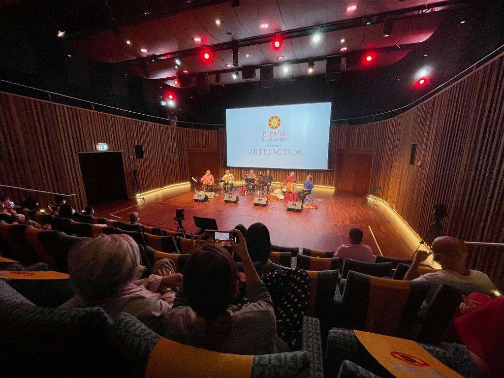 En la actuación que Artefactum protagonizó en el Pabellón de España con motivo del 12 de octubre, el grupo sevillano interpretó los himnos emiratí y español, que cobran un sonido muy singular tocados con instrumentos de música antigua. El ministro de Educación de Emiratos Árabes Unidos, Hussain Bin Ibrahim Al Hammadi, que estaba presente en el acto, quedó realmente impactado por la sonoridad del himno de su país en la versión de Artefactum y así se lo transmitió al embajador español, Íñigo de Palacio. Realmente emocionaron y se emocionaron con los himnos.