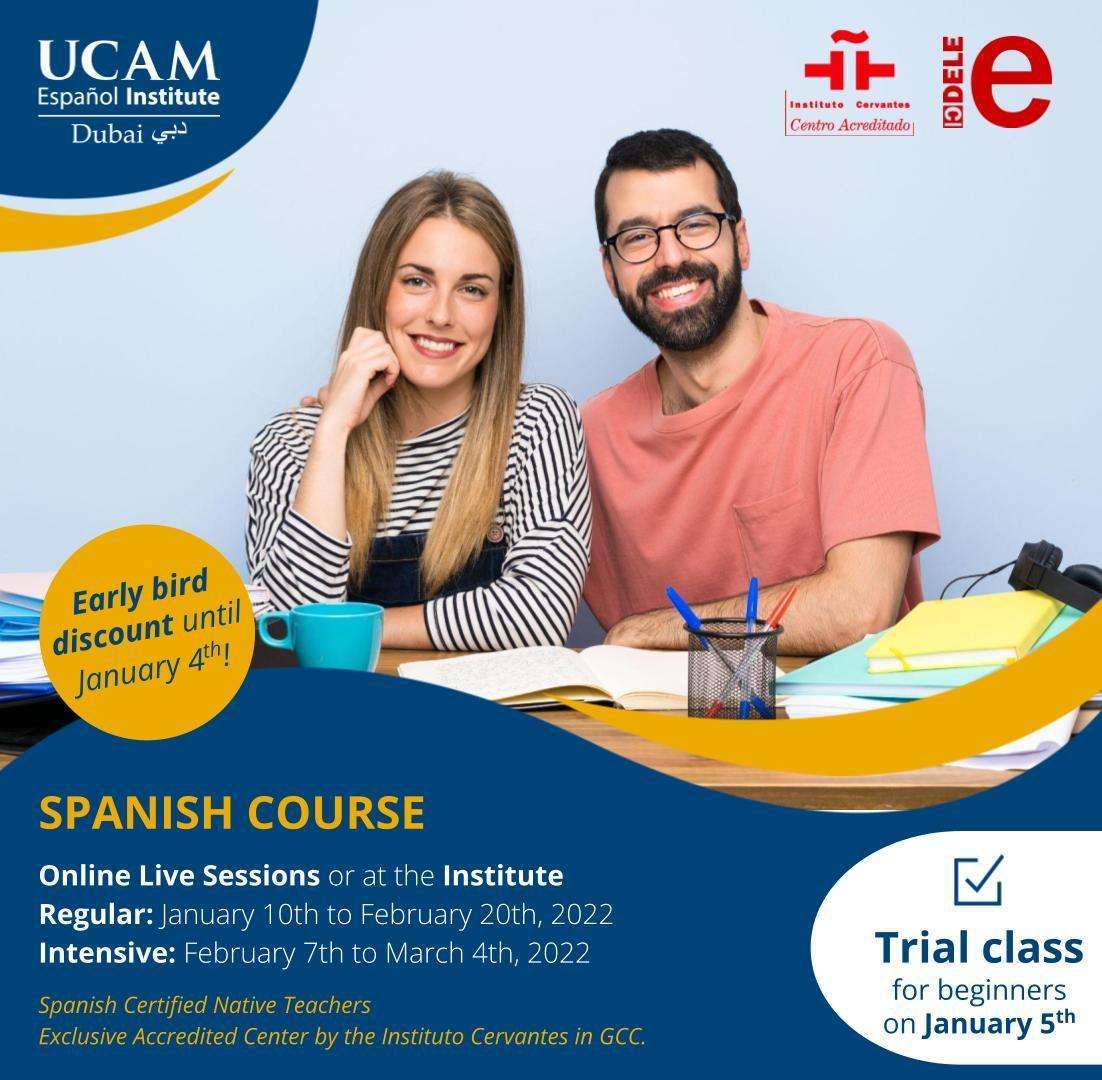 UCAM Español Institute, único Centro Acreditado por el Instituto Cervantes en Dubai, comienza la próxima semana sus cursos para adultos tanto online como presenciales en el centro de Jumeirah Lake Towers, de la mano de sus profesores nativos certificados. Los variados horarios de clase y los precios de los cursos pueden consultarse a través de este enlace.