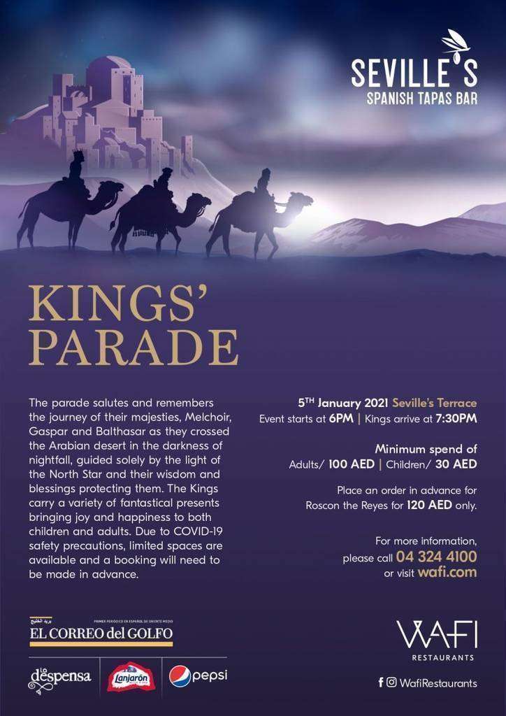 La Cabalgata de Reyes Magos del Seville's es una arraigada tradición en Dubai que este año alcanza los 14 años. Fue fundada por la española Cristina Cabrejas, quien hizo posible que en unas tierras tan lejanas de España arraigara un acontecimiento que cada 5 de enero saca a millones de personas a las calles.