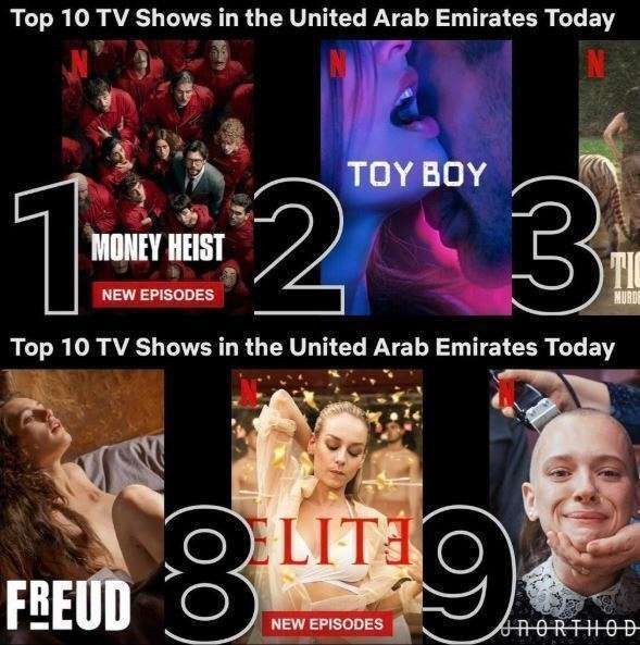 Los expertos decidirán si se trata de imaginación, arte, talento o recursos, pero lo que queda claro, mirando la clasificación de Netflix en EAU, es que no importa la cultura, la raza o la religión. Si está hecho y gusta en España, también cautiva en el resto del mundo.