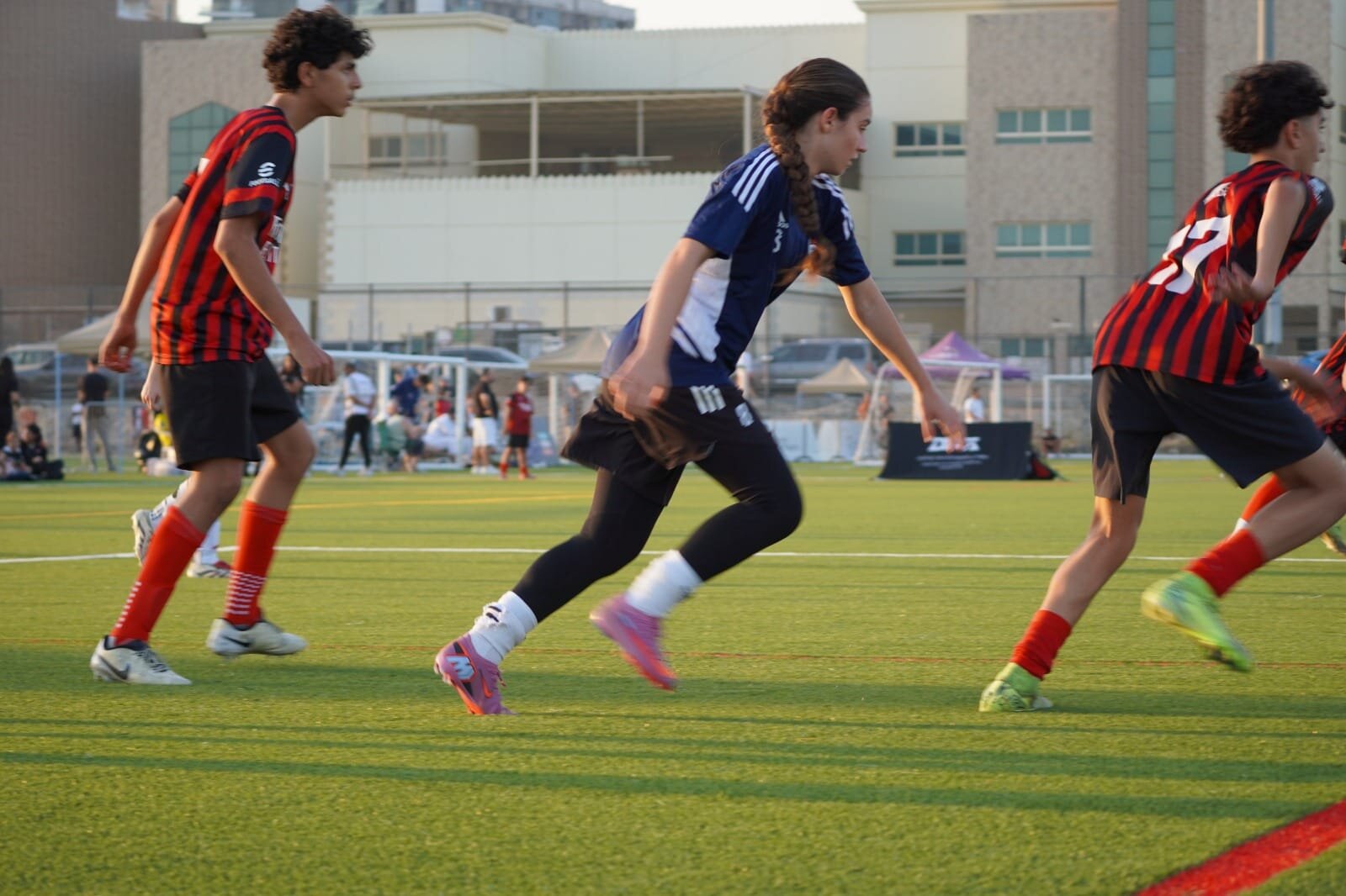 Jugar con el escudo del Barça Academy en Dubai también tiene un significado especial: “Te acerca un poquito más a España”. Y España siempre está presente. A veces en forma de vendas en las muñecas; otras, en los colores rojigualda personalizados en sus botas.