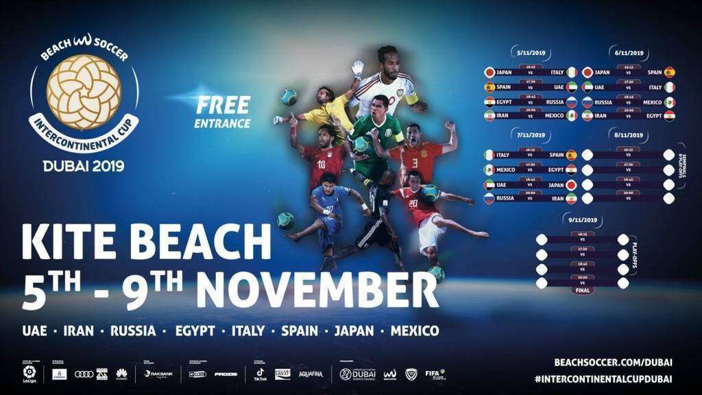 La Selección Española y la Selección de México de fútbol playa participarán en la novena edición de la Copa Intercontinental de Dubai del 5 al 9 de noviembre de 2019 en Kite Beach (ver localización).