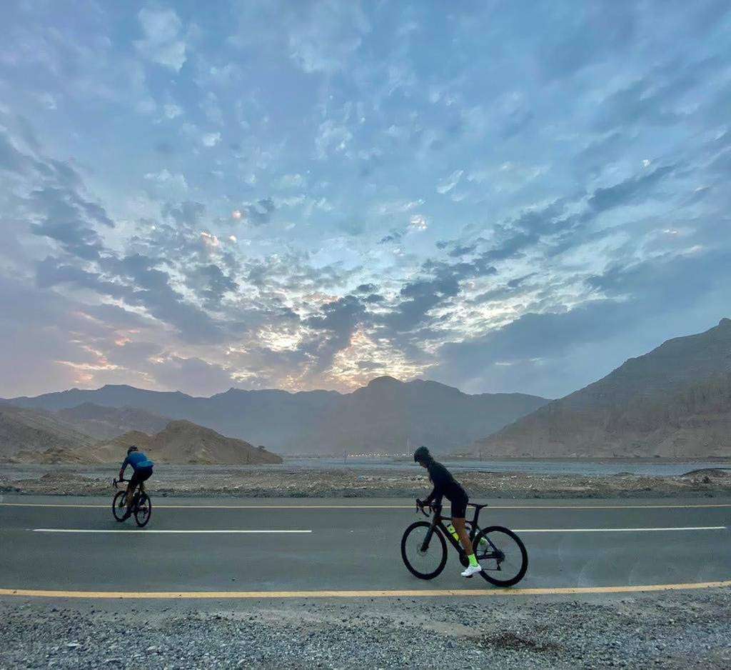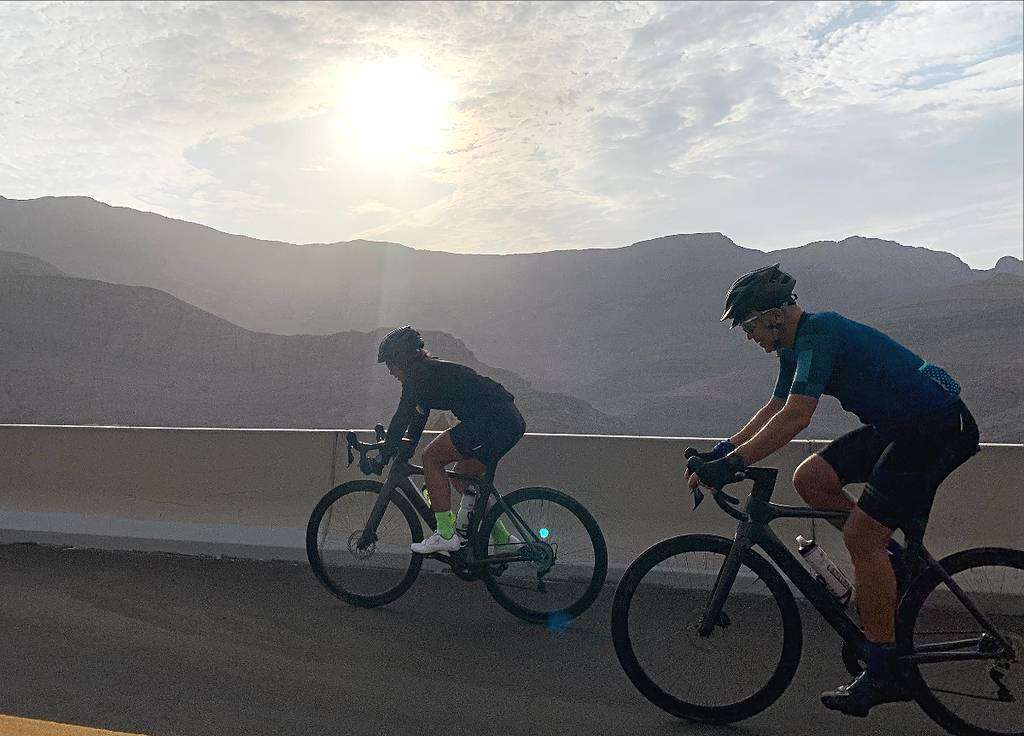 "Con mi mujer pensé en una forma saludable y de esfuerzo con que agradecer la generosidad de este país con mis paisanos y planificamos la subida al pico más alto de Emiratos en bicicleta en pleno verano", comenta Somoza a EL CORREO DEL GOLFO justo antes de comenzar la carrera.