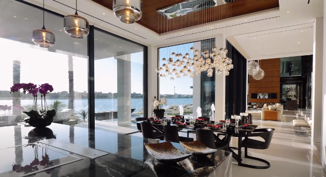 Algunos de los aspectos más destacados de la villa incluyen la decoración de muebles Bentley & Minotti de Louis Vuitton & Hermes; y tres salas de cine interiores y exteriores, que incluyen un cine al aire libre en la azotea junto con un jacuzzi de cristal infinito con un televisor emergente.