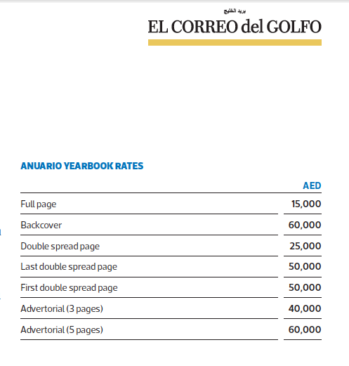 EL CORREO DEL GOLFO, con el objetivo de destacar la extraordinaria labor que llevan a cabo las empresas hispanas y sus profesionales en Emiratos Árabes Unidos (EAU) y los países del Golfo Arábigo, tiene previsto publicar su primer Anuario el 2 de diciembre de 2018, coincidiendo con el 47º Aniversario de la fundación de EAU.