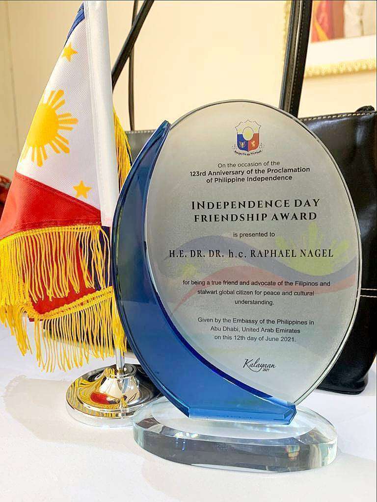 Raphael Nagel, fundador y presidente del Abrahamic Business Circle (ABC), ha recibido un destacado reconocimiento durante el 123 Día de la Independencia de Filipinas celebrado en Dubai. El acto contó con la presencia de la embajadora del país en Emiratos Árabes Unidos, Hjayceelyn Quintana, y del cónsul general, Paul Raymund Cortés, así como de amigos de la comunidad filipina en EAU y de una nutrida representación de la misma.