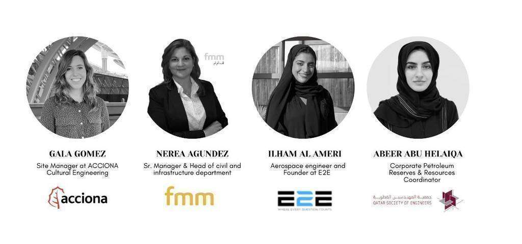 En el webinar intervendrán Gala Gómez, responsable de obra de ACCIONA Ingeniería Cultural; Nerea Agúndez, gerente y jefa de Departamento Civil e Infraestructura; Ilham Al Ameri, ingeniera aeroespacial y fundadora de E2E; y Abeer Abu Helaiqa, coordinadora corporativa de Reservas y Recursos de Petróleo.