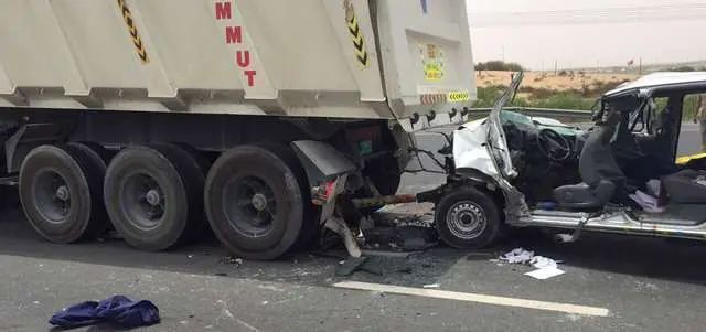 Al Mazroui confirmó la muerte de dos personas y que otras cuatro resultaron heridas por la colisión ocurrida en la Emirates Road, donde un camión de carga pesada se detuvo en el tercer carril de la izquierda en la carretera, mismo que está destinado a la circulación de camiones, mientras que el coche intentó evitar la colisión frenando a unos 50 metros, pero no pudo hacerlo, golpeando al camión por detrás, lo que condujo a su muerte y la de otra persona.