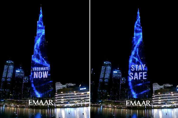 El edificio más alto del mundo, el Burj Khalifa, se iluminó con un mensaje muy importante este martes por la noche instando a todos a vacunarse para frenar la propagación del coronavirus en Emiratos Árabes Unidos.