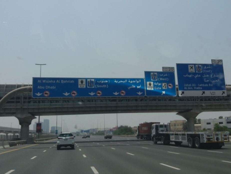 La Sheikh Zayed Road, cerca del arco del Salik de Jebel Ali, estaba bloqueada mientras cientos de autos se atascaban en el tráfico de la hora punta de la mañana en dirección a Abu Dhabi.