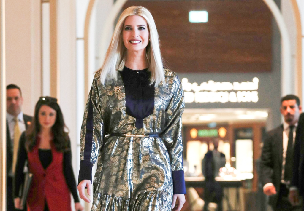 En su primer día en Emiratos Árabes Unidos, Ivanka Trump, hija y asesora del presidente de los Estados Unidos Donald Trump, eligió llevar una pieza de la marca emiratí, Layeur.