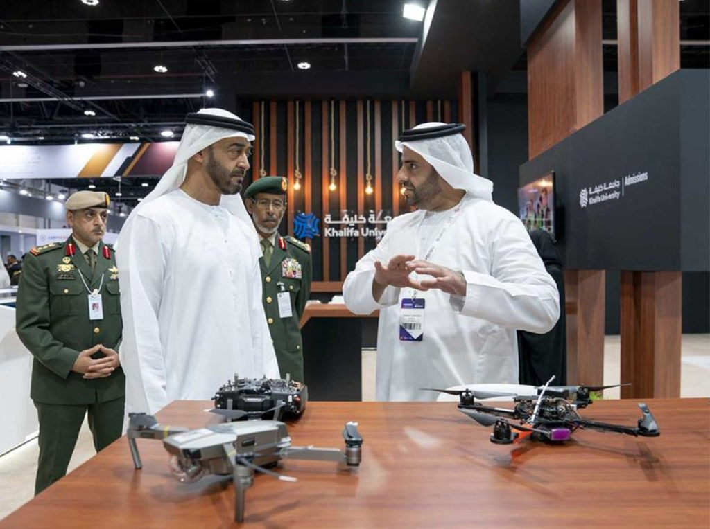 El jeque Hazza bin Zayed Al Nahyan, presidente adjunto del Consejo Ejecutivo de Abu Dhabi, visitó la Exposición de Sistemas No Tripulados, UMEX, y la Exposición de Simulación y Entrenamiento, SimTEX.