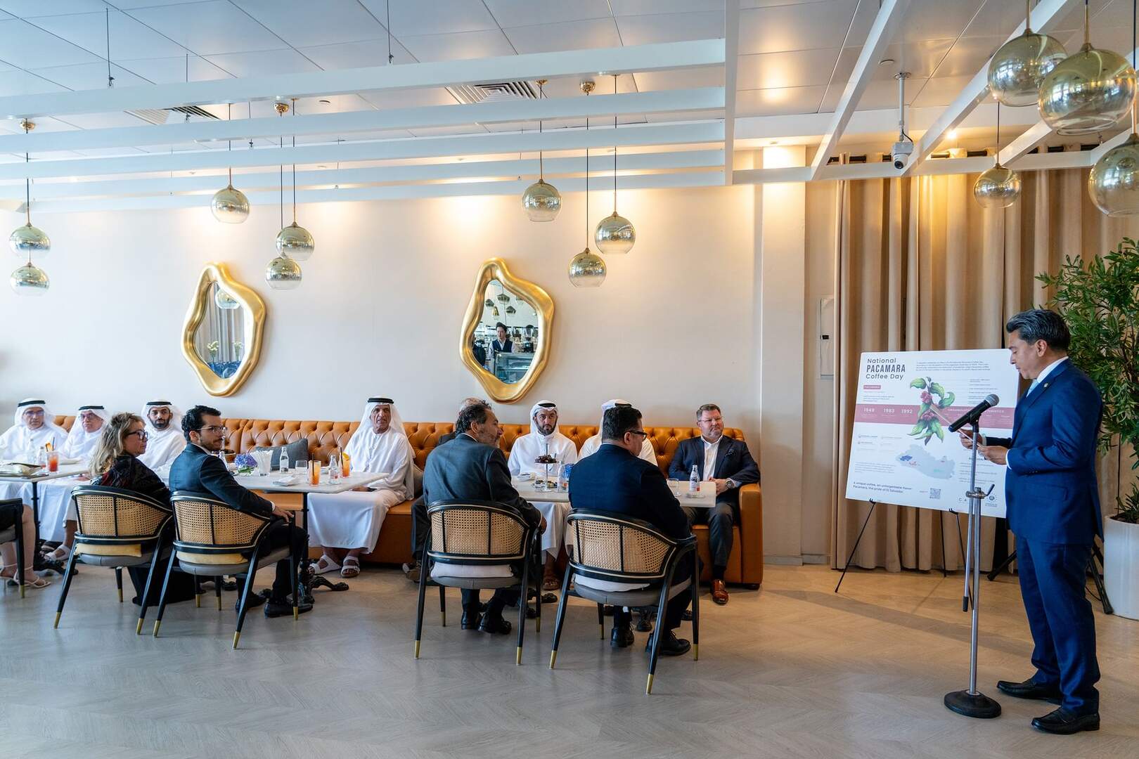 El miembro del Consejo Supremo de Emiratos Árabes Unidos y gobernante de Ras Al Khaimah, el jeque Saud bin Saqr Al Qasimi, acompañado por el presidente del Departamento de Servicios Públicos, el jeque Ahmed bin Saud bin Saqr Al Qasimi, asistió este viernes a un evento cultural organizado por la Embajada de la República de El Salvador en EAU. La ceremonia contó con la presencia del embajador salvadoreño, Gerardo Pérez Figueroa, así como del embajador de Guatemala, Jorge Rafael Archila Ruiz, y varios dignatarios.