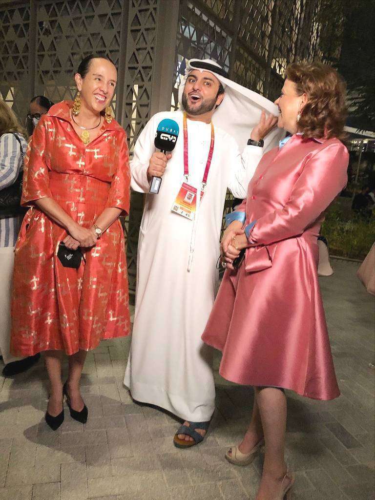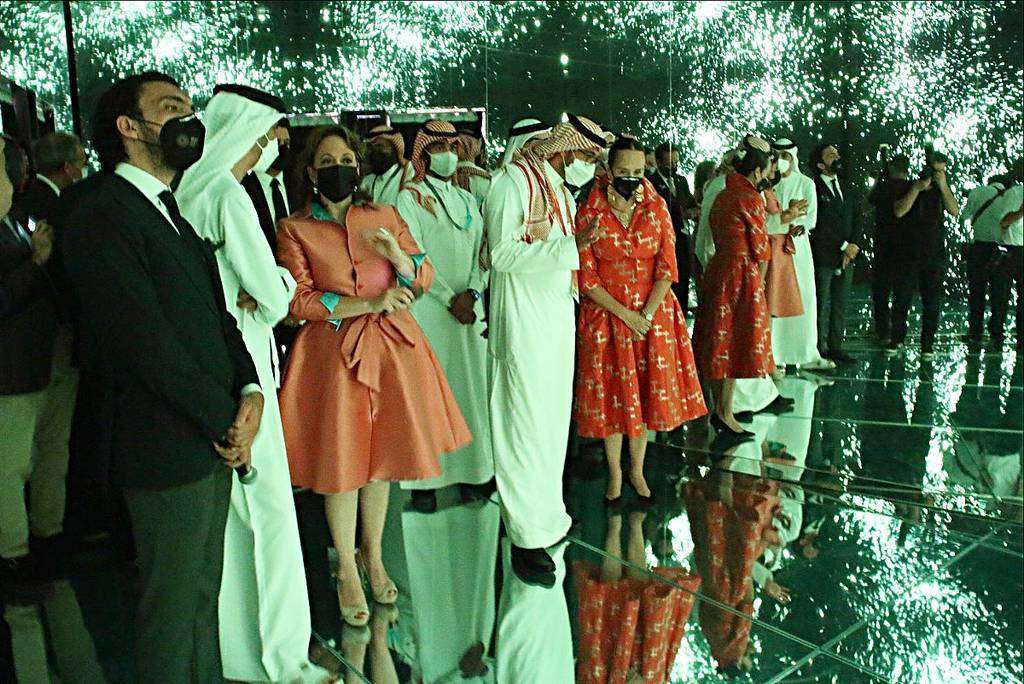 Asimismo estuvieron en la primera fila de la apertura oficial del Pabellón de México el director ejecutivo de la Oficina General del Comisionado de Expo 2020, Najeeb Mohammed Al-Ali, la comisionada general de México, Martha Jaramillo Domínguez, el director del Pabellón, Bernardo Noval, y la creadora del tejido artesanal que cubre por completo el espacio, Betsabé Romero.