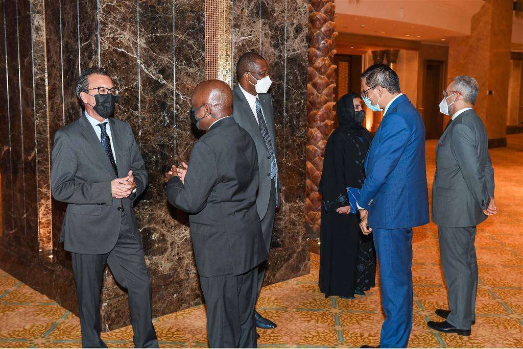 A su comienzo, Alia Mohammed Al Mahrezi, subsecretaria adjunta de Asuntos de Protocolo del Ministerio de Exteriores, pronunció un discurso durante el cual subrayó los "distinguidos esfuerzos realizados por el embajador para fortalecer las relaciones con Emiratos Árabes" y le transmitió la felicitación y agradecimiento del jeque Abdullah bin Zayed al-Nahyan, ministro de Exteriores.