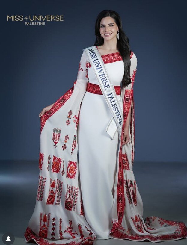 En un emotivo anuncio, la ex finalista de Miss Tierra, Nadeen Ayoub, ha decidido representar a Palestina por primera vez en el certamen de Miss Universo 2025, adornada con los colores y patrones tradicionales de su nación. Vistiendo un vestido blanco bordado con tatreez, un arte palestino ancestral, Nadeen expresó: "Hoy subo al escenario de Miss Universo no solo con un título, sino con una verdad".