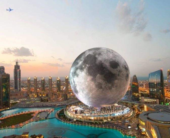 Con todas las maravillas arquitectónicas de Emiratos Árabes, no es difícil imaginar una estructura en forma de esfera aquí. La empresa Moon World Resorts Inc. (MWR) ha representado el complejo en el centro de Dubai justo al lado del Burj Khalifa. Michael Henderson, uno de los dos emprendedores detrás del concepto, le dijo al diario Khaleej Times que el proyecto es "grande, altamente complejo y totalmente único".