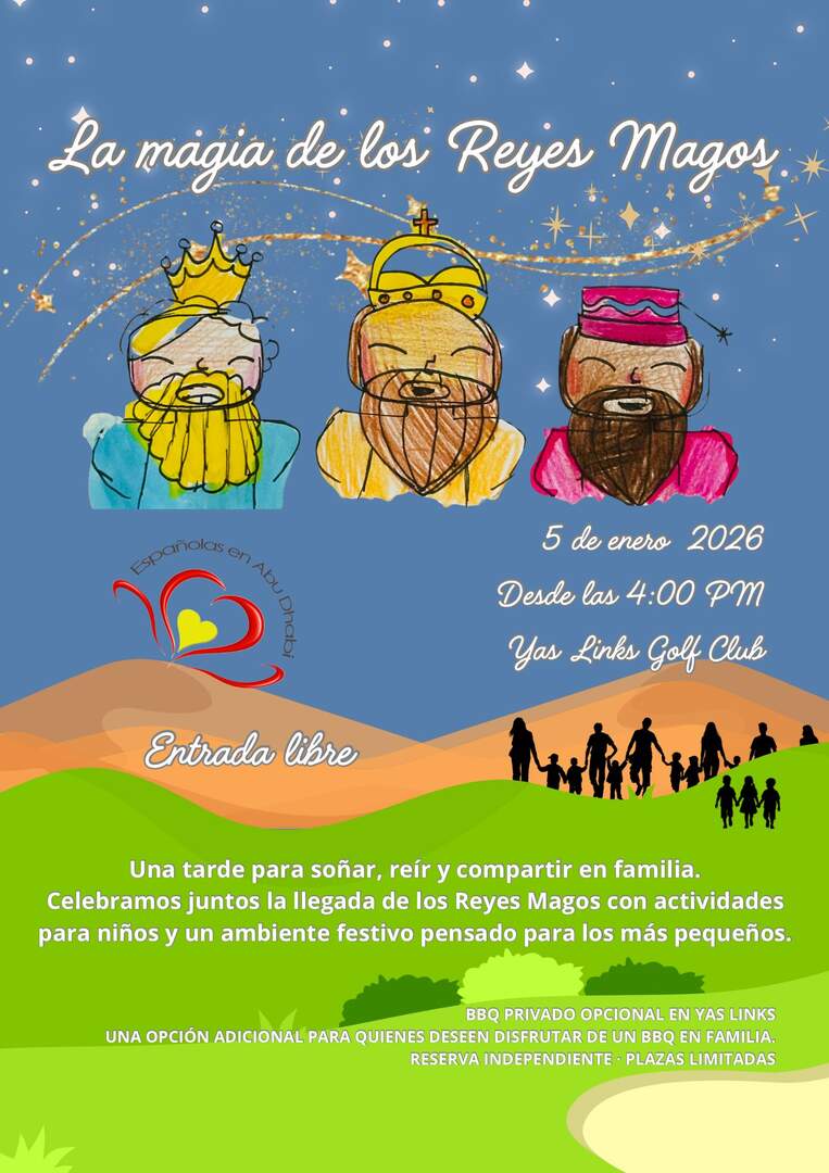 Por un año más, el grupo 'Españolas en Abu Dhabi' organiza la tradicional Cabalgata de los Reyes Magos, que tendrá lugar el próximo 5 de enero a las 16.00 horas en Yas Links. Esta celebración tan esperada, caracterizada por ser un evento gratuito y abierto a todos los asistentes, promete ser una tarde mágica para las familias y niños que residen en la capital emiratí.