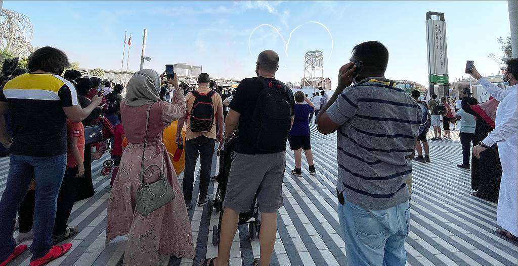 Los audaces vuelos atrajeron la atención de las miles de personas presentes en la Expo, que durante largos minutos no pudieron retirar la vista del firmamento. El epicentro del espectáculo estuvo sobre Jubilee Park.
