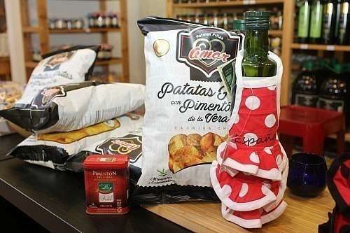 En las estanterías se pueden ver productos cien por cien españoles que van desde el apreciado aceite al azafrán, pero también otros relacionados con los equipos de fútbol de Real Madrid y Barcelona, todos originales. También hay conservas, artesanía, calzado, decoración, moda, complementos, trajes de flamenca o recuerdos. De todo y bueno.