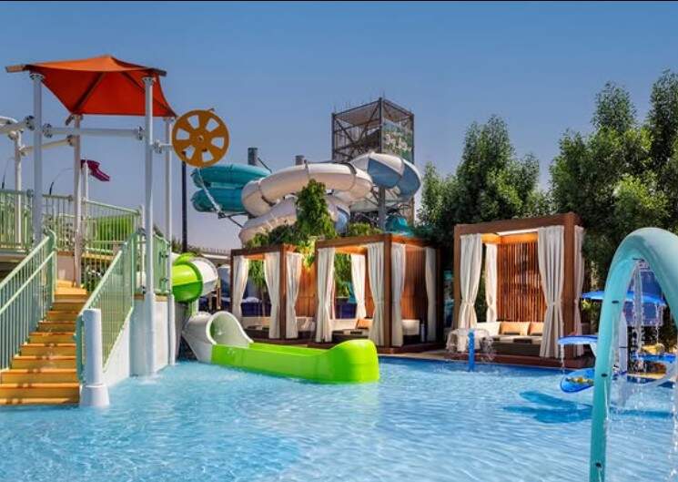 El complejo también presenta cabañas privadas de lujo con piscina de inmersión, ofreciendo una experiencia premium para sus usuarios. Para familias, hay áreas equipadas con tumbonas a la sombra, juegos acuáticos y espacios de descanso, garantizando una jornada de diversión para todos.