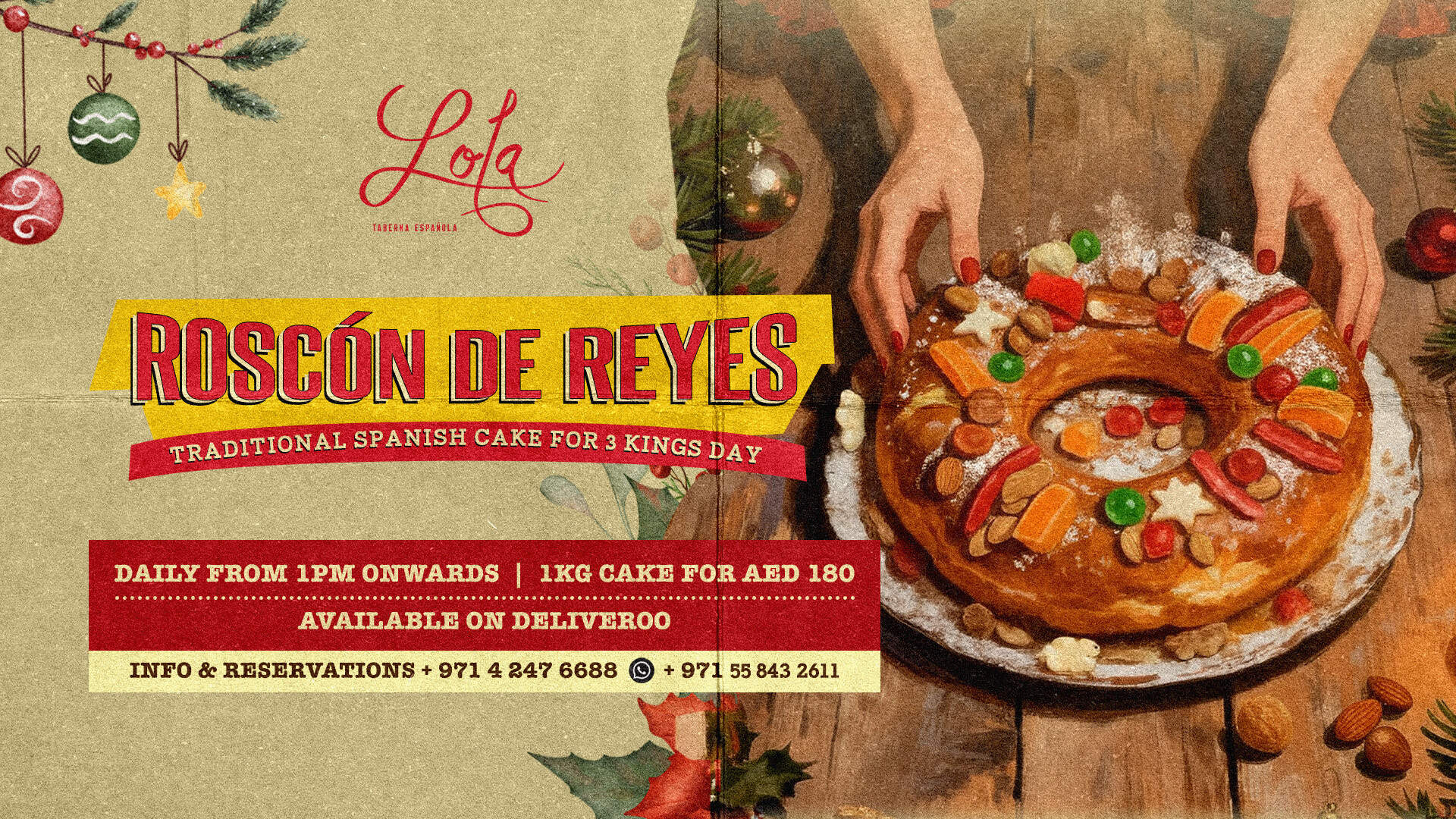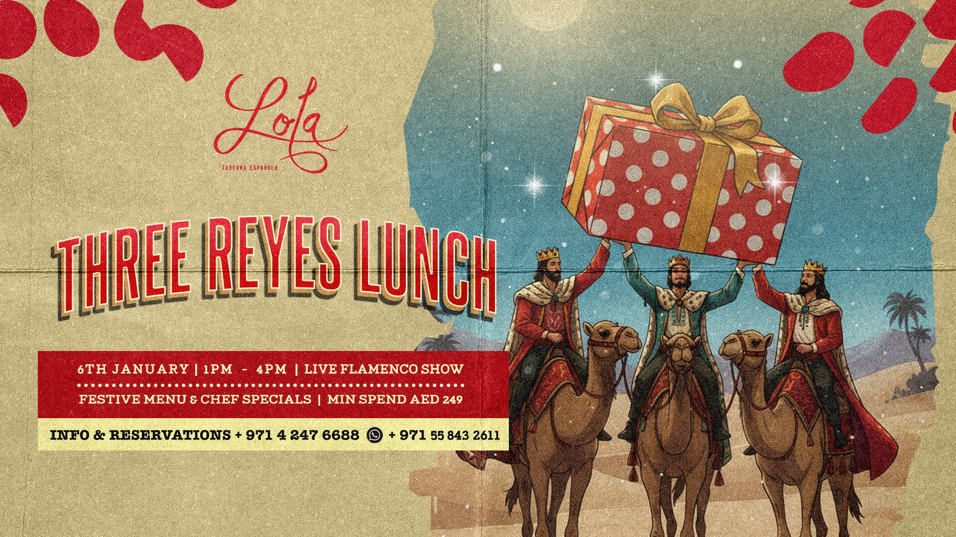 Finalmente, el 6 de enero, Lola Taberna celebrará el Día de Reyes con un almuerzo festivo lleno de platos especiales del chef y bebidas de temporada, acompañado nuevamente de entretenimiento en vivo, todo por un gasto mínimo de AED 249.