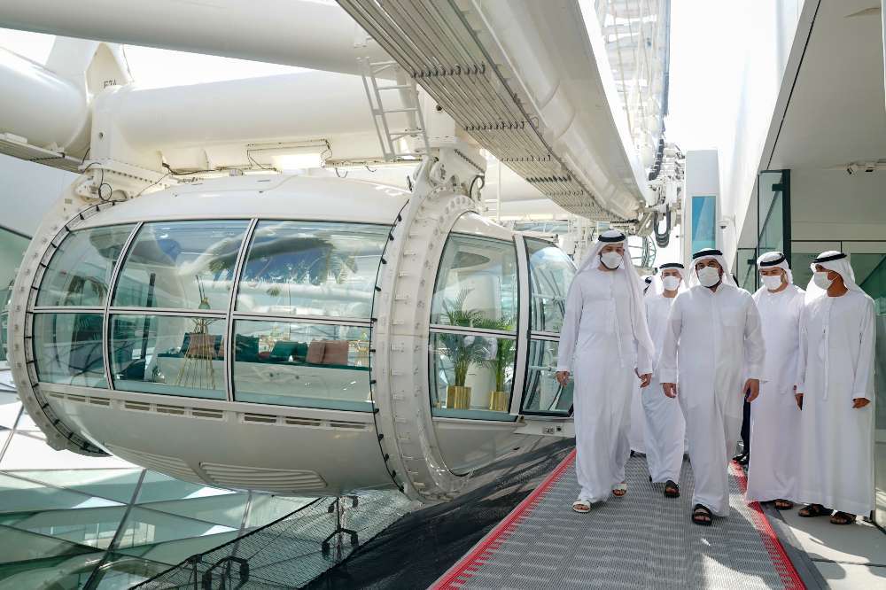 El jeque Ahmed bin Mohammed conoció las cabinas de observación de Ain Dubai, que brindan a los visitantes una vista perfecta de 360 grados de Dubai sobre las aguas del Golfo Arábigo. Las 48 cabinas de pasajeros que rodean la enorme circunferencia de la rueda tienen capacidad para transportar a más de 1.750 visitantes a la vez. Una rotación completa de la rueda tarda 38 minutos.