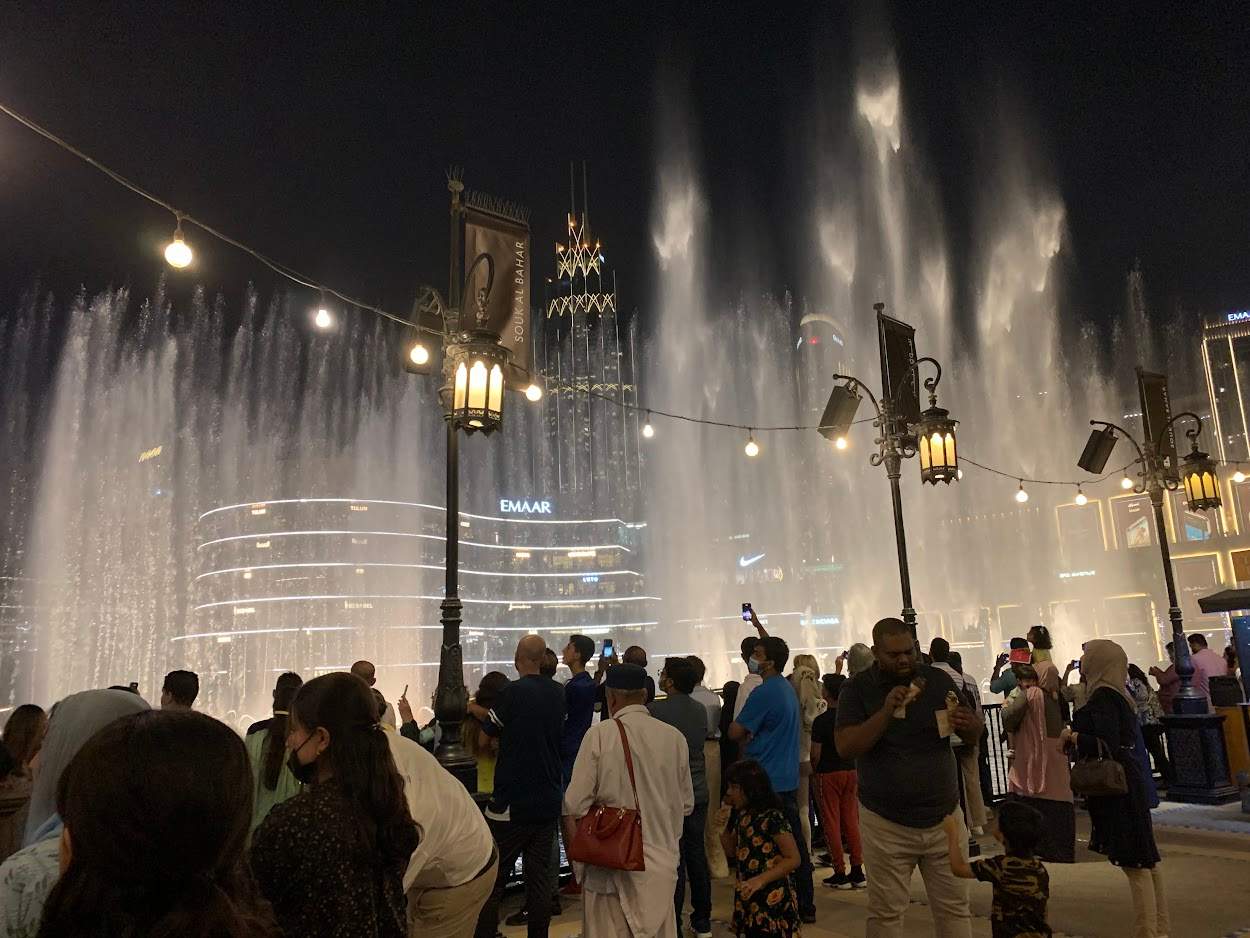 Desde la tarde, el paseo marítimo frente al Dubai Mall se llenó de personas que esperaban con entusiasmo el retorno de la fuente más famosa del mundo. Barcos de limpieza recorrían el lago mientras guardias de seguridad y agentes de la Policía de Dubai aseguraban el área, garantizando la seguridad del evento.