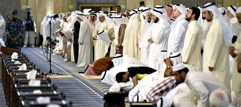 Las oraciones del mediodía en la Gran Mezquita fueron atendidas por el emir, el jeque Sabah Al Ahmad Al Sabah, junto con el príncipe heredero, el presidente del Parlamento y varios ministros del gabinete y legisladores.