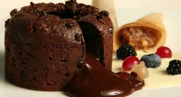 Se toma la crema que ya habrá espesado y se pone en el fondo y en los laterales, de modo que en diez minutos al baño María en el horno que estará a 210º, se hará esta primera parte del bizcocho. Se saca el ganache que teníamos en la nevera y lo colocamos en el centro de este bizcocho, terminándolo de cubrir con la crema y haciendo que las paredes también se completen hasta arriba, de modo y manera que el ganache quede oculto, en el centro del bizcocho. Y al horno nuevamente con él. Otros diez minutos o un cuarto de hora, hasta que veamos que está hecho. Se espera a que se enfríe el bizcocho y a disfrutar de un postre sensacional.