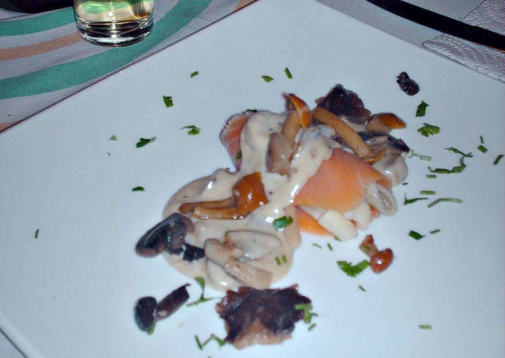 Montamos el plato de la siguiente manera: Enrollamos en el salmón la pasta haciendo una especie de canelones de buen tamaño. Los napamos con la salsa o crema de setas que manteníamos caliente, y sobre ella las setas salteadas. Se termina de decorar con perejil recién cortado y a otra cosa mariposa. Un plato fácil y rico de verdad. Y esto es todo amigos.