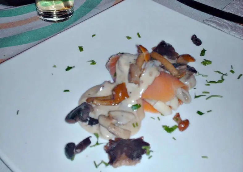 Montamos el plato de la siguiente manera: Enrollamos en el salmón la pasta haciendo una especie de canelones de buen tamaño. Los napamos con la salsa o crema de setas que manteníamos caliente, y sobre ella las setas salteadas. Se termina de decorar con perejil recién cortado y a otra cosa mariposa. Un plato fácil y rico de verdad. Y esto es todo amigos.