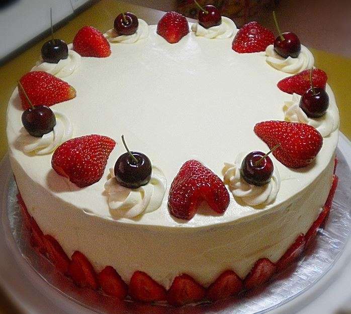 Tarta de fresas y cerezas