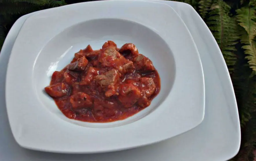Como siempre, paciencia y cariño, que es lo único que necesita este guiso de tomate con nízcalos y ternera. Respetad los tiempos, que la carne de ternera necesita estar desde el principio, desde que la ponemos a fuego medio junto a la cebolla, y hasta que se termina de hacer la salsa de tomate. Entonces estará tierna y se podrá disfrutar del guiso.