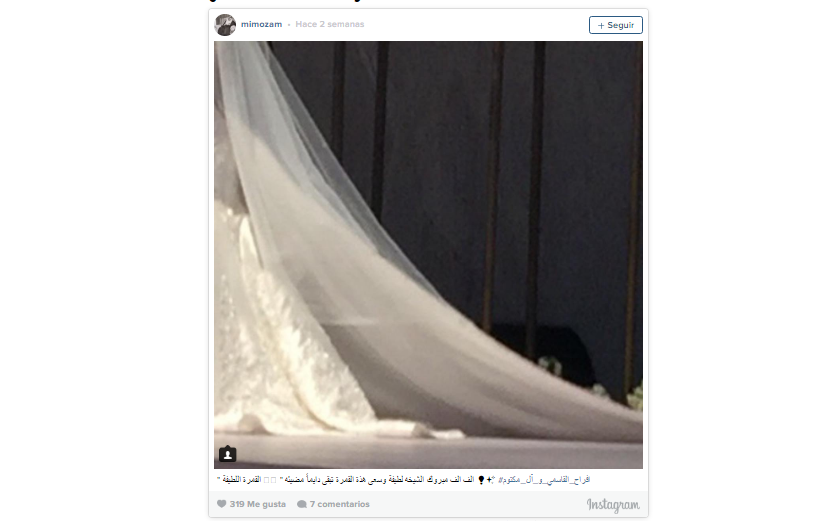 Sheikha Latifa bint Mohammed bin Rashid Al Maktoum -hija de Su Alteza Sheikh Mohammed bin Rashid Al Maktoum, vicepresidente y primer ministro de los Emiratos Árabes Unidos y gobernante de Dubai- y Shaikh Faisal Saud Khalid Al Qasimi se han casado durante una gran ceremonia celebrada en el World Trade Center de Dubai que ha generado gran expectación en las redes sociales, donde se han publicado algunas fotografías del lugar enlace.