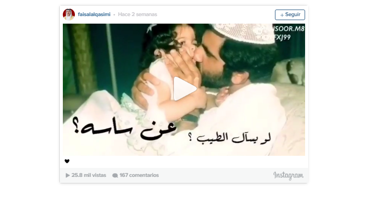 Poco después de la boda, el novio compartió en las redes sociales un hermoso poema en homenaje a su esposa. El poema, compuesto en forma de canción tradicional, compara a la joven Sheikha Latifa con una preciosa joya, de valor incalculable para su esposo. En el vídeo, que puede ver pinchando en este enlace, el poema está ilustrado con numerosas imágenes de la novia tomadas a lo largo de su vida, desde que era una niña hasta la actualidad. Las fotografías muestran a la Sheikha Latifa en escenas muy familiares y personales. Aparece, por ejemplo, en los brazos de su padre, Sheikh Mohammed, o montando a caballo de pequeña.