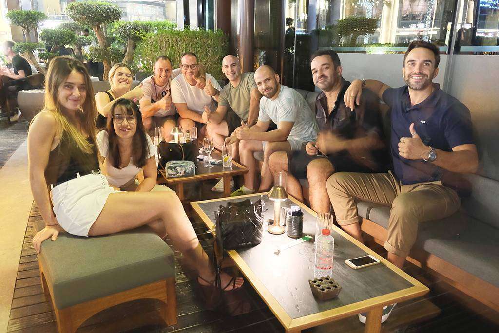 También hubo gran encuentro en 99 Sushi Bar, punto habitual de reunión de la comunidad hispanoparlante justo ante la Fuente de Dubai. Hasta el restaurante acudieron personas de varias nacionalidades, de España, Haití, Filipinas, Líbano y de varias regiones españolas como Madrid, País Vasco, Valencia, Andalucía. Todos juntos y bien avenidos pero no revueltos. La banda sonora la puso la Dj Jasmine Sihene, que es de Málaga.