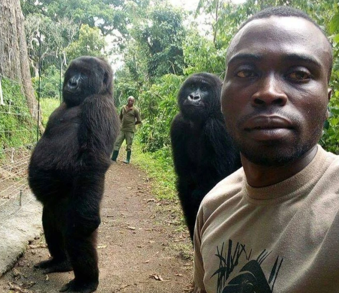 También fue la estrella de una selfie del Día de la Tierra de 2019 que se volvió viral: posaba con un guardabosques y con su compañero gorila Ndeze con la barriga hacia afuera.
