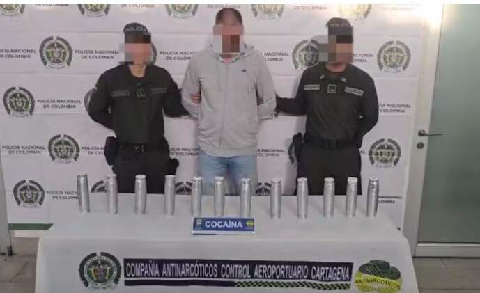 Policía Nacional de Colombia captura a un europeo con más de 4 kg de cocaína rumbo a Dubái
