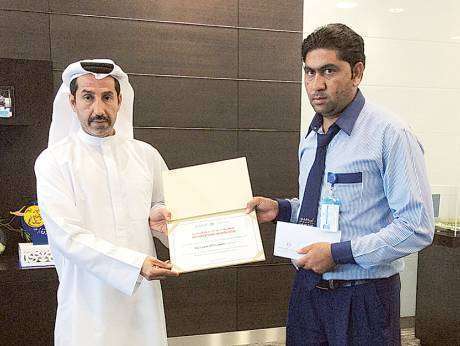 Sheer recibió una condecoración de Abdulaziz Al Jarwan, director de Asuntos Transporte de Sharjah RTA, por su honestidad y lealtad como taxista.