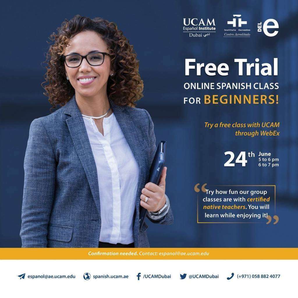 Hoy, miércoles 24, tendrán lugar clases gratis de prueba de 5 a 6 pm y de 6 a 7 pm. Los interesados pueden confirmar su asistencia, inscribirse o despejar sus dudas en el correo electrónico espanol@ae.ucam.edu o en el teléfono 0588824077 (tanto llamada como What'sapp).