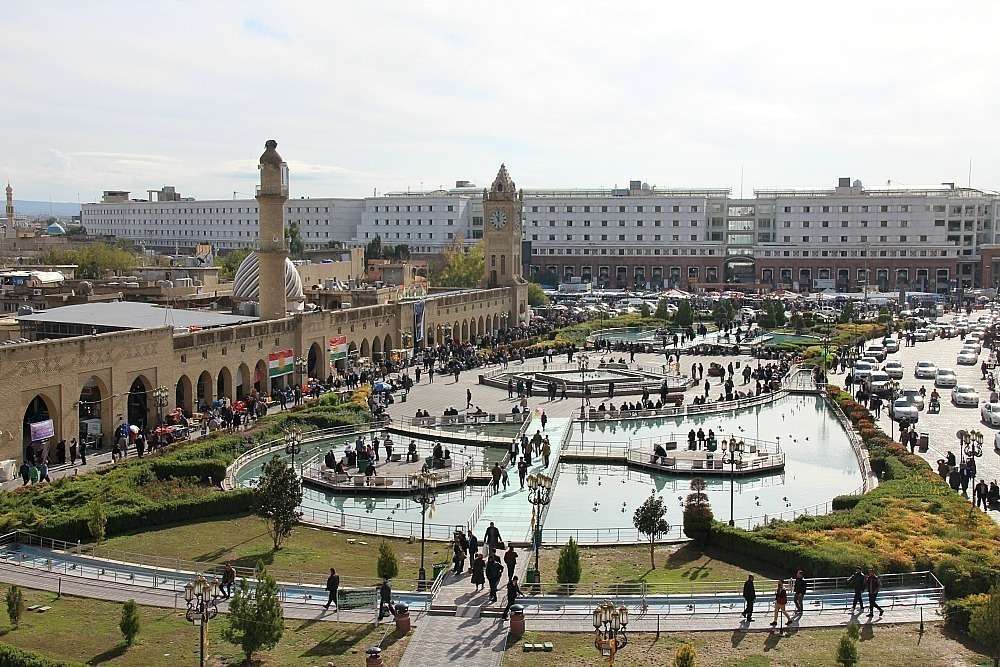 En el bazar inmenso a los pies de la ciudadela, que se extiende como tentáculos por las principales calles del centro de Erbil, puede encontrarse todo tipo de establecimientos y puestos de joyas, telas, potingues, frutos secos, especias, ropa, decoración, muebles, jabón... El bazar recuerda al de Estambul, pero sin un solo turista y, aún mejor, sin ser molestado por los comerciantes. El norte de Iraq es probablemente el único destino de Oriente Medio que es seguro, vacío de turistas y al mismo tiempo tranquilo y respetuoso con los pocos aventurados que se adentran a conocerlo. No escasean los inmigrantes iraníes en la capital del Kurdistán, y se les reconoce por su mejor nivel de inglés y por la perpetua sonrisa, que se echa de menos en los locales, quizá tras los turbulentos años de lucha primero contra Saddam Hussein, luego contra Al-Qaeda y finalmente contra el Estado Islámico.