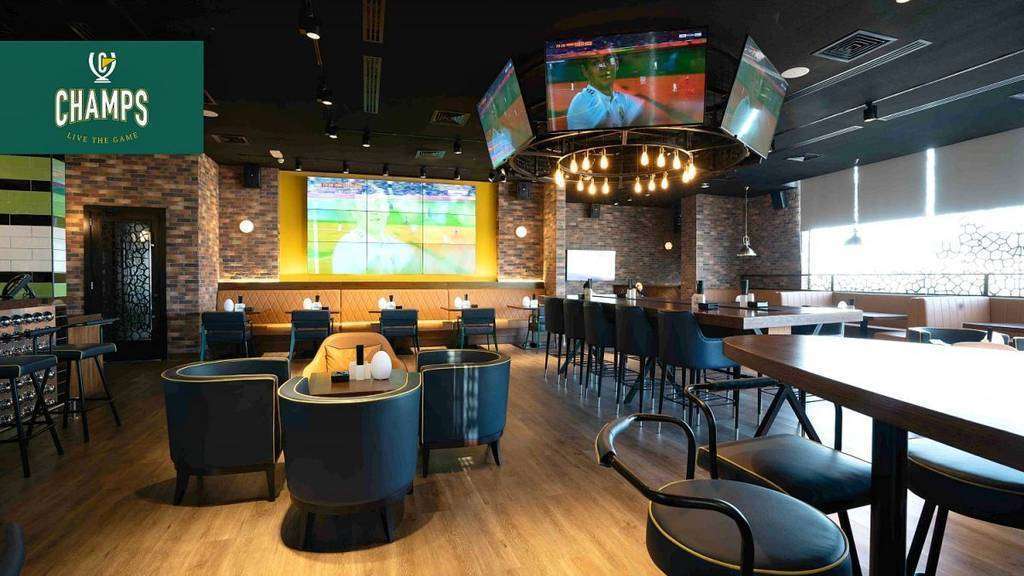 Además, en la planta baja, Champs ofrece comida estilo Gastropub, que incluye hamburguesas y alitas de pollo, junto con una selección de bebidas. Tiene un ambiente amigable y animado con temática deportiva con múltiples pantallas de TV para ver con todo detalle y en primera fila los acontecimientos deportivos.