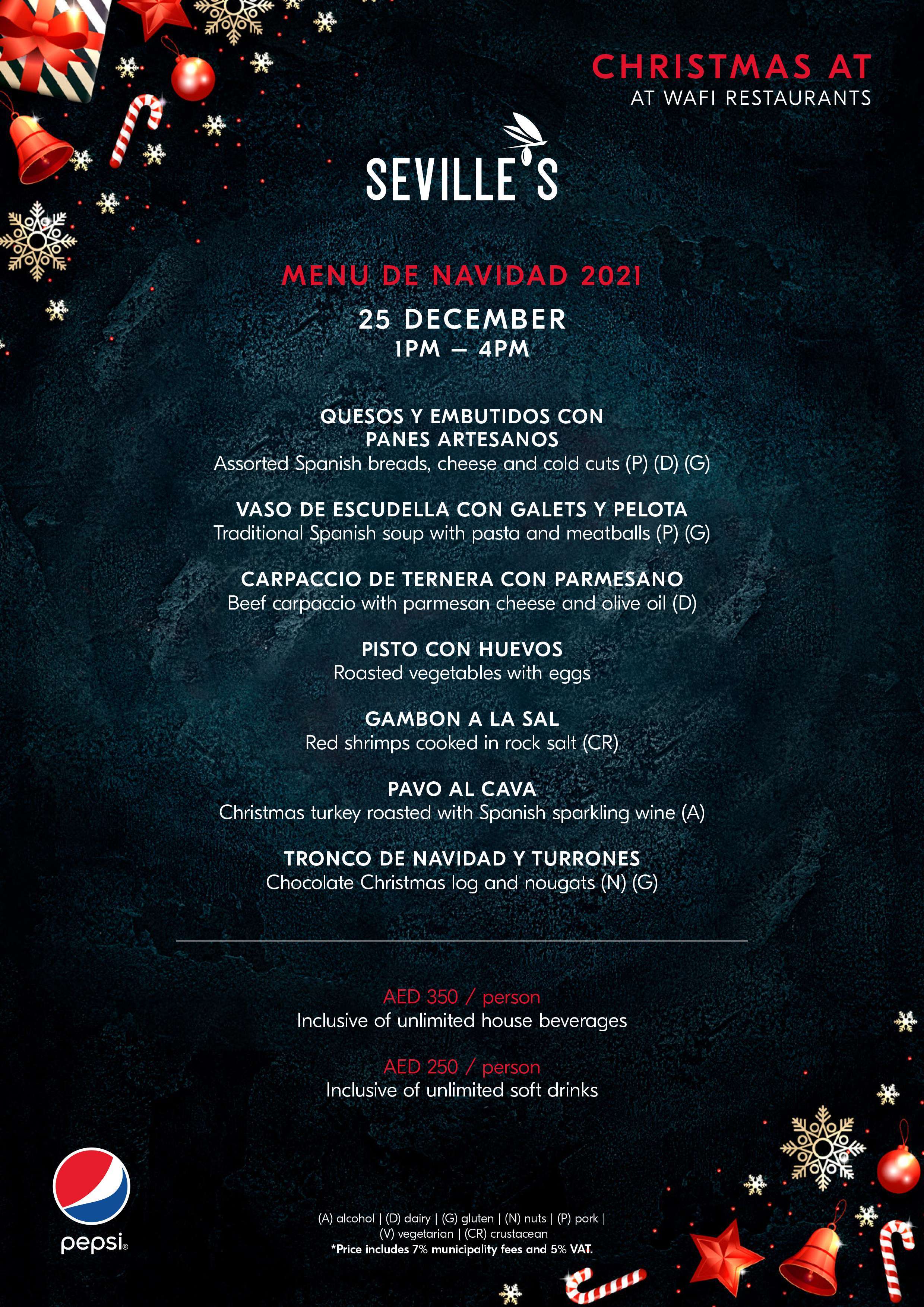 El restaurante Seville’s pondrá la mesa el próximo 25 de diciembre para que pueda celebrar la Navidad con un delicioso menú tradicional español.