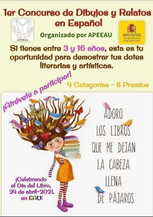 Aún están a tiempo de participar en el concurso niños y niñas residentes en Emiratos Árabes con edades comprendidas entre los 3 y los 16 años según estas bases y plantillas. Los dibujos y relatos deben enviarse al correo electrónico apeeau@gmail.com hasta el 19 de abril.
