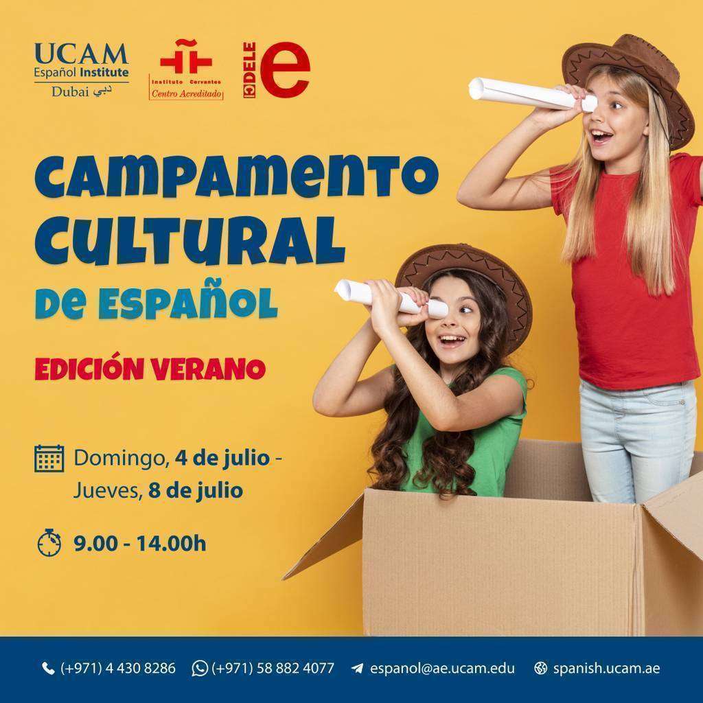Por lo que se refiere al Campamento Cultural de Verano, para niños de 5 a 11 años en la sede de UCAM Dubai en JLT (ver localización), tendrá lugar durante las semanas del 4 al 8 de julio y del 22 al 26 de agosto.