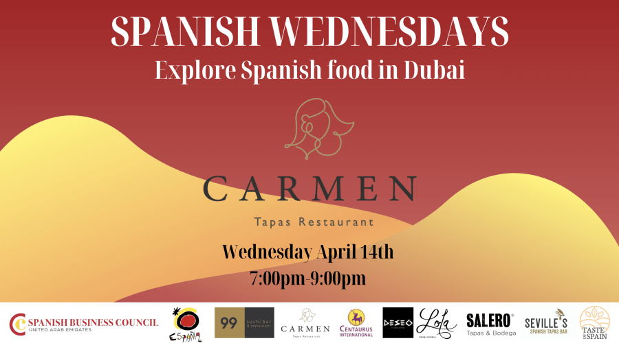 Carmen, nuevo restaurante español en Dubai (ver localización), hará el miércoles 14 de abril su puesta de largo en los ‘Spanish Wednesdays’, organizados por Turespaña y el Spanish Business Council. Será su primera cita y permitirá conocer de primera mano de 19.00 a 21.00 horas lo que va a ofrecer en los próximos tiempos a la comunidad española y latina en Emiratos Árabes.