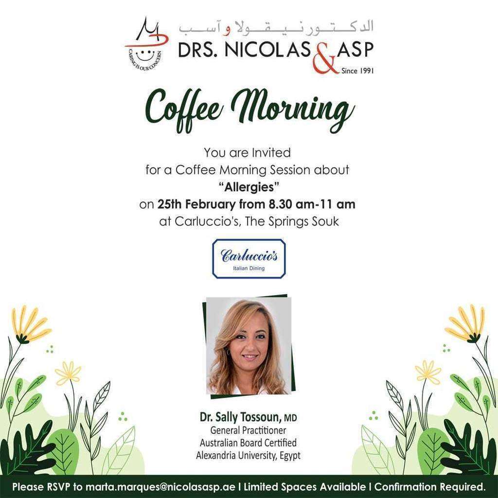 'Coffe Morning' en Dubai de la clínica Drs. Nicolas & ASP sobre las alergias